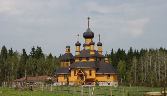 ХрамІдэя будаўніцтва праваслаўнай царквы ў музеі “Дудуткі” нарадзілася ў 2006 годзе. Заснавальнікі музея і калектыў прынялі рашэнне стварыць прыход і запрасіць праваслаўнага святара ў музей для арганізацыі жыццядзейнасці царкоўнай абшчыны. Асноўнай мэтай рэалізацыі гэтай ідэі ў музеі было прыцягненне працаўнікоў музейнага комплекса, жыхароў навакольных вёсак і гасцей нашага музея да духоўнай гісторыі беларускага народа, адраджэння культурнай спадчыны праваслаўных абшчын Пухавіцкай зямлі. У тым жа 2006 годзе было выдзелена часовае памяшканне ў прылеглай да музея вёсцы Пціч для правядзеннянабажэнстваў паводле праваслаўнага абраду. Святар Яўген Грамыка, які быў накіраваны епархіяльным упраўленнем Беларускага Экзархата, 27 лістапада 2006г. здзейсніў першую Боскую Літургію ў часовым памяшканні Царквы. З гэтага моманту можна казаць пра пачатак паўнавартаснага жыцця музейнай парафіі. Акрамя набажэнстваў, у царкве сталі здзяйсняцца споведзь і Прычасце, хрышчэнне, вянчанне. Неўзабаве, 16 лютага 2007г., музейны комплекс наведаў Мітрапаліт Філарэт, Патрыяршы Экзарх усяе Беларусі, які асвяціў крыж на месцы будучага будаўніцтва новага храма. І з мая 2007 года пачалося ўзвядзенне новага храма. Храм быў узведзены амаль за год. 27 красавіка 2008г. адбылося першае Набажэнства. Знамянальны гэты дзень быў і тым, што гэта была Велікодная служба. З гэтага дня ў Храме кожную нядзелю і па праваслаўных святах служыцца Літургія. Наступнай падзеяй царквы і нашага прыходу стала асвячэнне Храма. Свята адбылося 7 ліпеня 2008 года. Гэты дзень з'яўляецца прастольным святам царквы. Гэта дзень Раства св. Прарока Іаана Хрысціцеля. Асвячэнне прастола царквы здзейсніў Мітрапаліт Філарэт у прысутнасці святароў пухавіцкіх парафій, таксама былі запрошаны святары з Мінска. Асаблівая ўвага была аддадзена гасцям з Чарнагорыі, з манастыра г. Цэцін, манахам, якія прывезлі і перадалі ў дар нашай Царкве абраз з часцінкамі мошчаў св.Іаана Хрысціцеля. Кожную суботу, перад вячэрняй службай, перад іконайадбываецца малебен з акафістам Св. Прароку. Для праваслаўных хрысціян Беларусі дадзеная ікона з'яўляецца святыняй. Пры асвячэнні Храма прысутнічалі вернікі, ахвярадаўцы, работнікі музея, госці, пасол Сербіі ў РБ. Важным дадаткам да добраўпарадкавання Храма стаў выраб і ўстаноўка іканастаса, асноўны дэкор якога выкананы з саломы прыёмамі народнага саломапляцення. Аўтарам дызайну і вытворцам з'яўляецца Салдатава Вера Яўгенаўна. Асаблівае захапленне ў гасцей выклікаюць саламяныя царскія вароты. Створкі і верхняя частка брамы - усё выканана з саломы. Тугія вітыя жгуты аздабляюць іканастасныя ўстаўкі. Унутры жгутоў - плеценыя квадраты. Па-над жгутамі рассыпаюцца плеценыя ўзоры з ланцужкоў маленькіх ромбікаў, якія фарміруюць саламяныя крыжы ўнізе, пасярэдзіне і зверху.